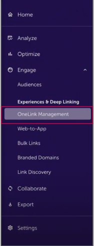 Navigate to Engage > OneLink Management